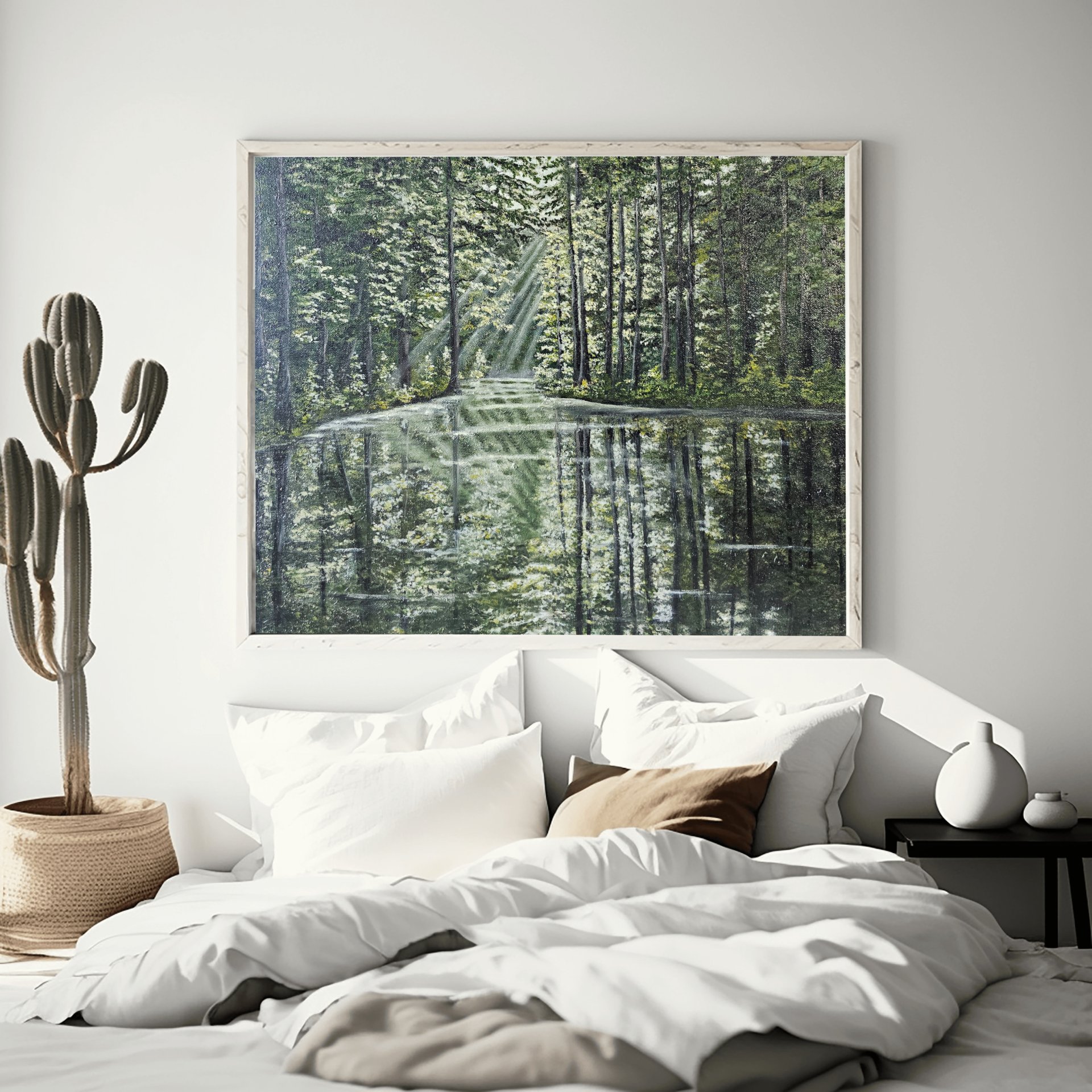 This original painting will not be reproduced once sold. Add Nature’s Mirror to your collection today and elevate your space with serene, luxurious art.